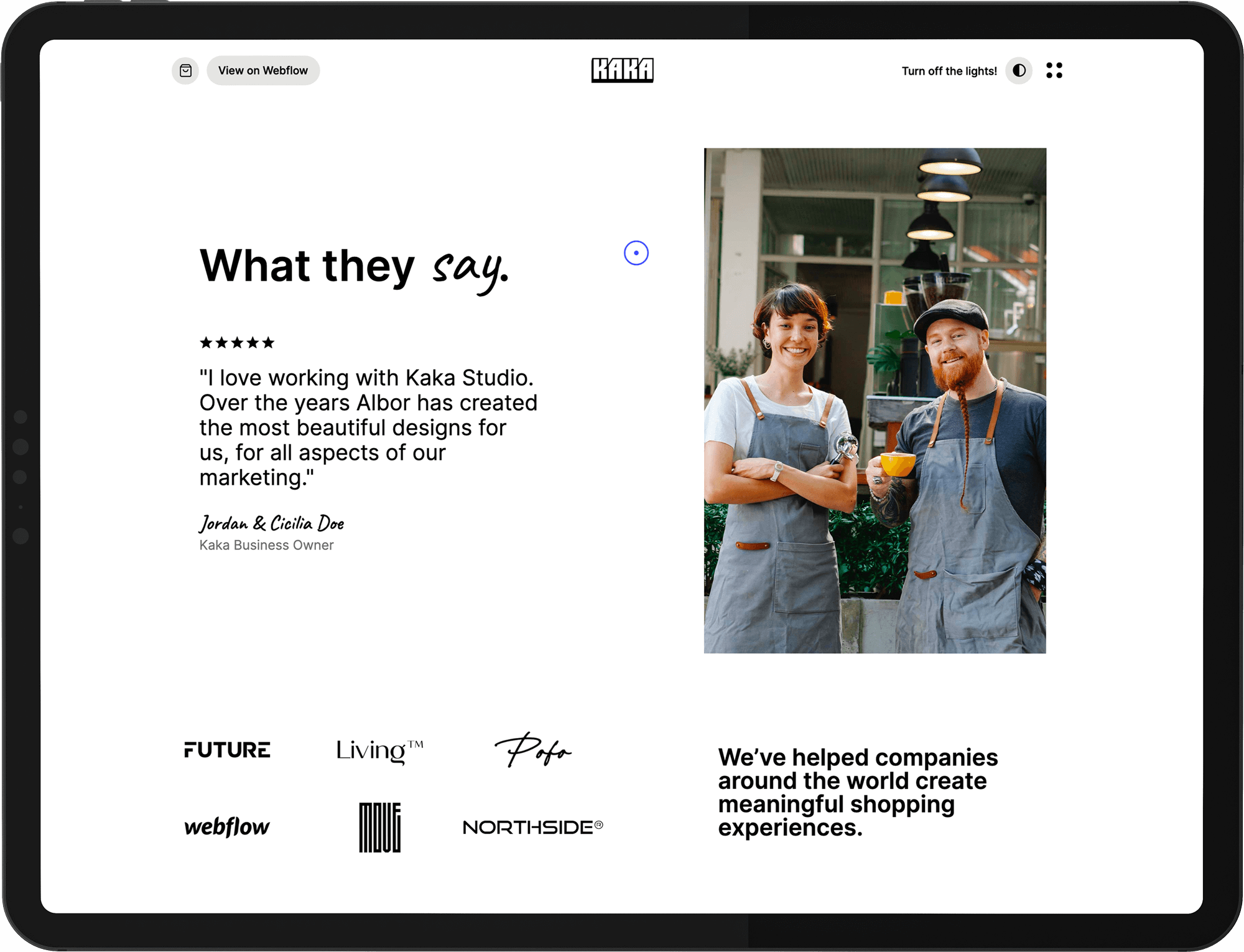 "I cannot recommend Kaka Studio highly enough. I worked with Albor to launch Webflow at the end of 2021."